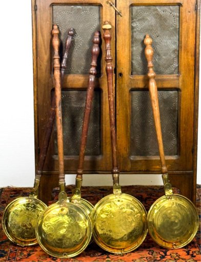with wrought iron, bed warmers, pewter, brass copper, etc, decorative